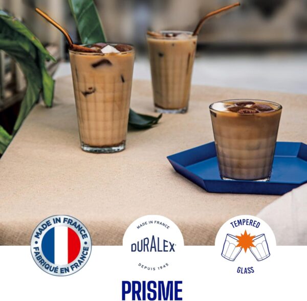 Dricksglas Prisme är tåliga, mångsidiga dricksglas, från Duralex. De är vackra och har en unik fasettslipad yta som reflekterar ljusets strålar. Prismeglasen är härdade har lång lång hållbarhet vilket gör dem perfekta för restauranger, hotell, storkök och caféer. Finns i klart och blått glas. Även för varma drycker.