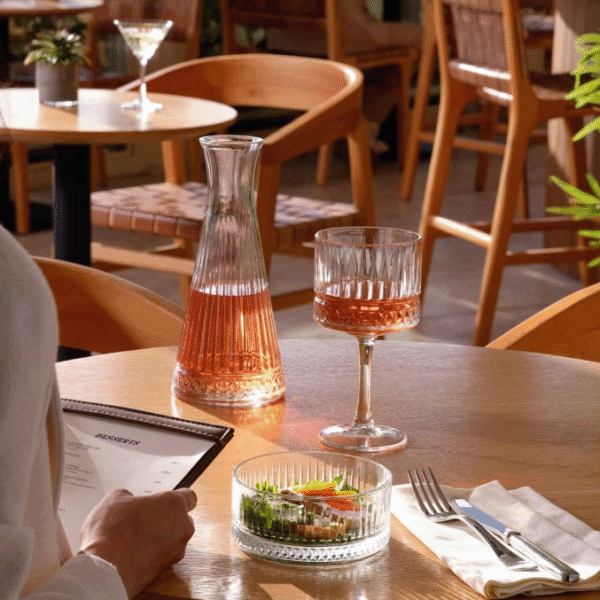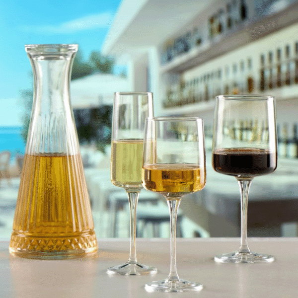 Elysse karaff med prismor. Vacker karaff i glas som passar utmärkt som vattenkaraff på borden eller att servera vin i. Eller till whiskeyn på barhyllan. Tillverkad av soda lime-glas som kännetecknas som en hårt material som står sig väl mot märken och skav. Ett hållbart val då glaset kan återvinnas om och om igen, där allt spill går tillbaka in i produktionen. En reptålig karaff, framtagen för den professionella verksamheten. Från Pasabahce.