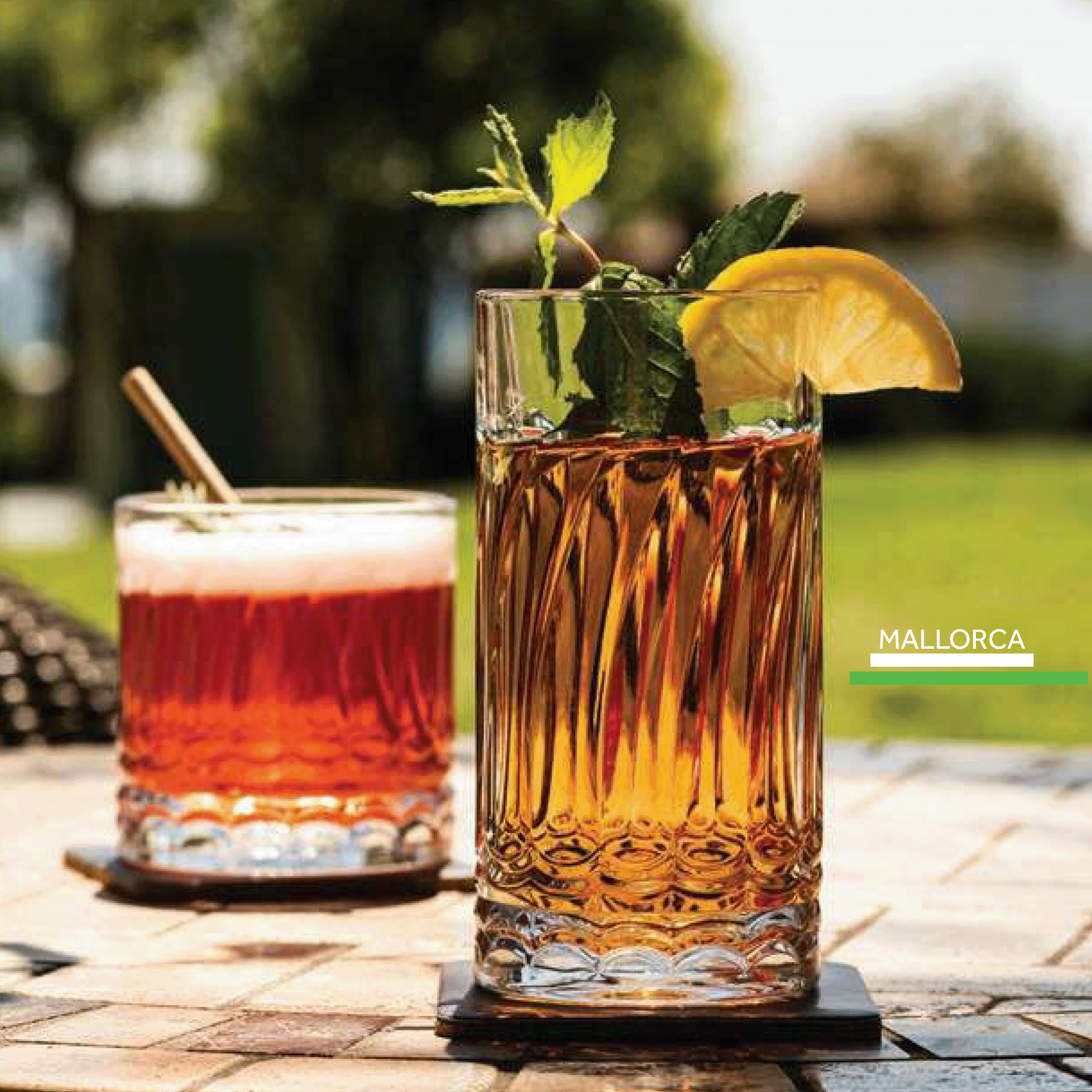 Mallorcakollektionen är den perfekta symbiosen mellan modern estetik och praktisk design, skapad för att prestera i ett högt tempo. Glaset utmärker sig med sina eleganta vågor som ger en distinkt och samtida karaktär vid varje servering. Perfekt både till drinkar, soft drinks och som juiceglas. I serien finns även ett Rocksglas på 33 cl.
