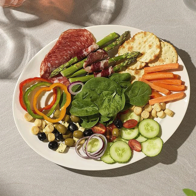 Uppläggningsfat Omega. I vitrifierat porslin. Praktiskt uppläggningsfat för buffén i lagom storlek och väldigt prisvärt.
